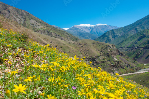 mountain, landscape, mountain, nature, sky, flower, summer, alps, meadow, grass, cloud, spring, travel, view, flower, forest, panorama, field, green, yellow, snow, rock, hill, alpine, cloud