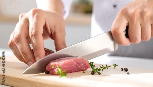 steak, beef, butcher, chef, fillet, knife, meat, preparation, food, kitchen, raw, cookery, man, piece, board, cut, cutting, hand, pepper, red, salt, uncooked, cooking, fresh, pork meat, wooden, male, mignon, person, step, work, hotel, menu, process, rosemary, service, black, chop, dark, eatery, garlic, grill, herb, juicy, marbled, market, sauce, slice, spice