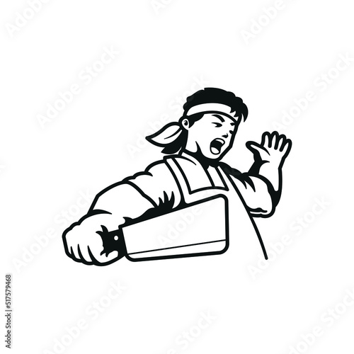 meat cutter logo illustration line art
