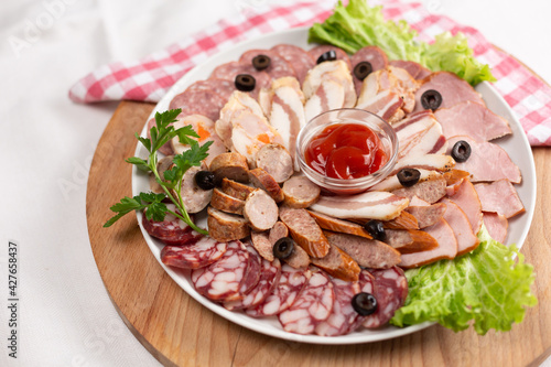 board, meat, sausage, plate, prosciutto, different, type, served, olive, pork meat, slice, sliced, snack, table, traditional, salami, meal, ham, epicure, fresh, background, food, dinner, bacon, deli, wooden, beef, cold, set, italian, assortment, cookery, delicious, red, product, eat, cut, view, object, smoked, platter, ingredient, sausage, fat, spicey, various, many, tasty