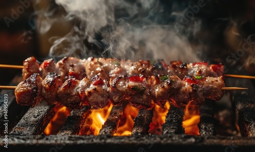 meat, grilling, smoke, food, cook, fire, bar-b-q, bar-b-q, hot, charcoal, steak, beef, heat, roast, summer, flames, meal, skewer, closeup, dinner, lunch, picnic, red, pork meat, outdoors, preparation, bar-b-q, burn, tasty, coal, delicious, background, dark, nature, party, fresh, cookout, portion, grid, shashlik, shish, juicy, epicure, chicken, black, fat, outside, tenderloin