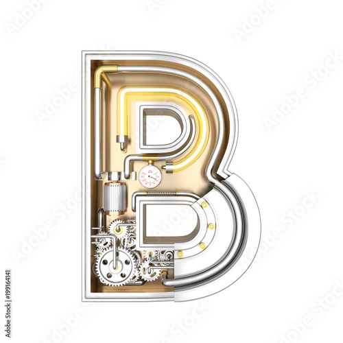 Mechanic alphabet ,letter B on white background with clipping path. 3D illustration