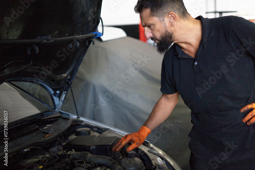 mechanic, car, auto, repair, service, maintenance, engine, garage, men at work, workshop, professional, man, industrial, vehicle, check, fixing, automotive, technician, job, occupation, dirty, skilled, male, working, industry, uniform, expertise, dependability, diagnostic, troubleshooting, transport, technology, part, problem, solution, adult, person, manual, labor, engineering, equipment, safety, glove, concentration, sharpened, specialist, breakdown, regular