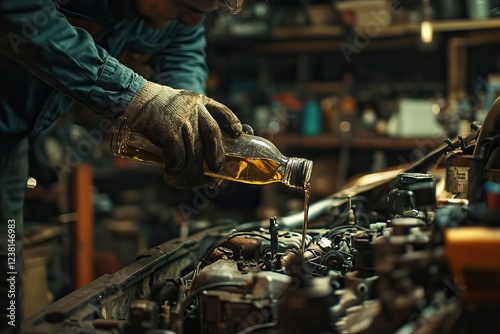 mechanic, engine, oil, workshop, car, maintenance, vehicle, repair, lubrication, automotive, precision, tool, hand, glove, pouring, bottle, garage, service, motor, care, fluid, machinery, technology, expertise, efficiency, closeup, automobile, professional, machine, sharpened, engineering, transportation, equipment, toolshed, craftsmanship, safety, attention, liquid, container, servicing