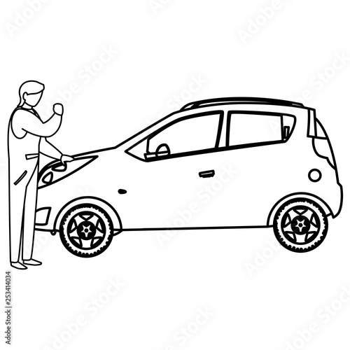 mechanic worker with car vehicle