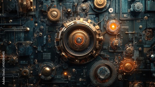 mechanical, gear, technology, industrial, futuristic, engine, detail, design, abstract, background, metal, gold, teal, illuminated, modern, machine, industry, science fiction, art, texture, circuit, complex, cog, wheel, element, construction, power, connection, gear, device, equipment, robotic, network, automation, cyber, digital, closeup, pattern, illustration, system, iron, structure, metallic, technical, engineering, science fiction, dark, panel
