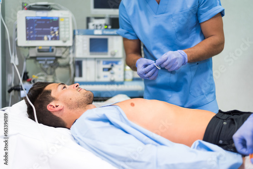 Medic preparing patient for procedure