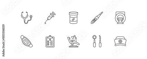 stethoscope, syringe, pill bottle, thermometer, ambulance, heartbeat, bandage, oxygen tank, scalpel, ultrasound, magnifying, location, stitching, teeth, eye, clinic, kidney, diagnostic, herbal medicine, lung, asthma, emergency call, shield, sirup, nurse, no smoking, blood test, wheelchair, vitamin