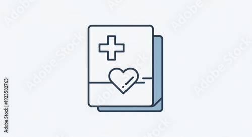 Medical Book with Heart Icon, Healthcare Symbol, Doctors Guide and Health Education, Line Art Style