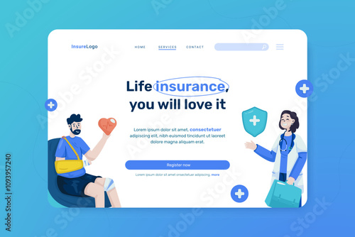 Medical care life insurance illustration on landing page design
