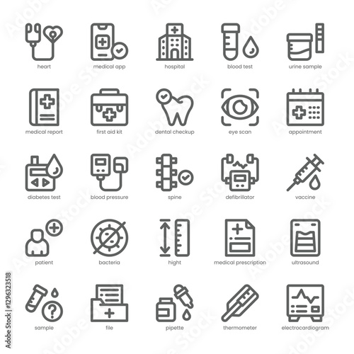 Medical Checkup Icon pack for your website, mobile, presentation, and logo design. Medical Checkup Icon outline design. Vector graphics illustration and editable stroke.
