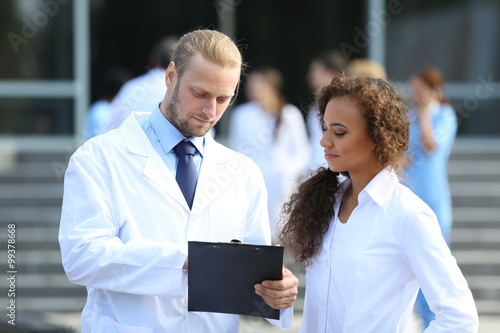 adult, assistance, attractive, building, care, clinic, clipboard, colleague, concept, diversity, doctor, entrance, ethnic, female, friendly, hand, photogenic, happy, health, holding, hospital, human, international, male, mature, medicals, medicine, medic, man, nationality, outdoors, paramedic, people, physician, portrait, prescription, race, smart, smiling, specialist, staff, standing, stethoscope, teamwork, together, 2, uniform, white, woman, young
