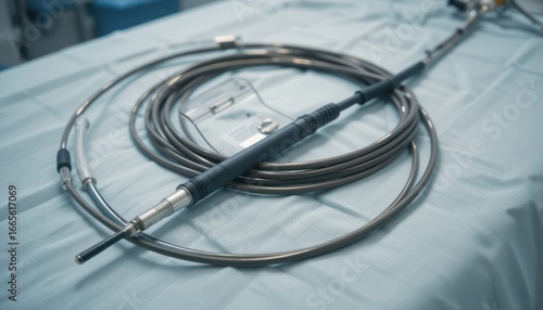 Medical Endoscope Instrument Bundle on Surgical Table.