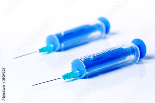 Medical equipment. Injection isolated on a white background with reflection. Pharmacy background.