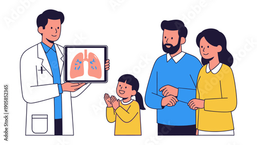 doctor, family, tablet, lung, medicals, health care, consultation, eltern, children, well-being, treatment, medicine, health, illustration, diagnosis, patient, medical office, advice, healthcare professional, expert, professional, male, female, children, showing, presentation, explaining, learning, cognition, support, guidance, disease, care, well-being, lifestyle, doctors office, check-up, understanding, information