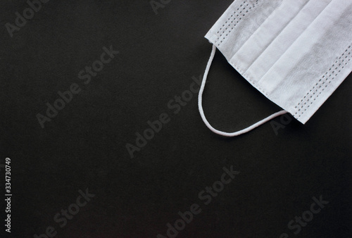 Medical mask for virus protection. Disposable mask. On a black background. Copy space.