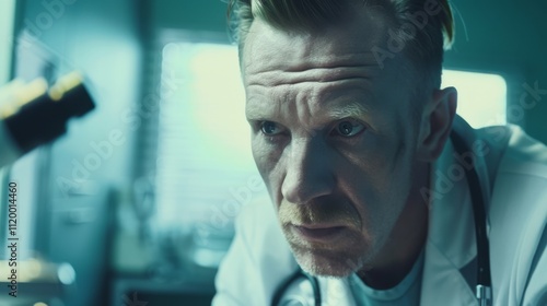 disease, investigation, medicals, professional, microscope, slide, serious, expression, laboratory, sterile, environment, exam, science, research, health, analysis, study, diagnosis, pathology, microbiology, attention, concentration, dedication, precision, expertise, skill, cognition, life events, insight, understanding, observation, scrutiny