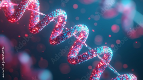 Medical research Concept. Stylized DNA helix with glowing particles