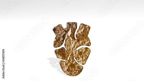 MEDICAL SPECIALTY HEART casting shadow from a perspective. A thick sculpture made of metallic materials of 3D rendering. illustration and background