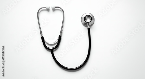 stethoscope, medicals, health care, instrument, clinical, diagnosis, equipment, tool, isolated, white, black, shiny, chrome, medicine, health, doctor, nurse, exam, check-up, aid, closeup, studio shot, medical equipment, modern, minimalist, bright, illuminated, clean, hospital, clinic, technology, scientific