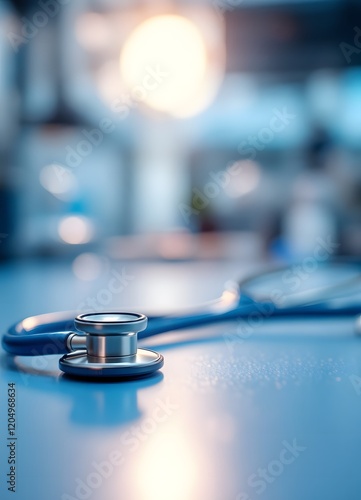 Medical Stethoscope on Blue Surface, Healthcare Symbol