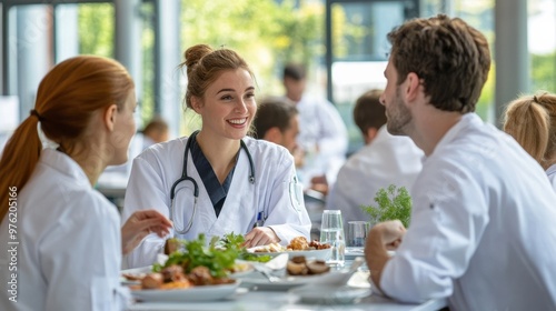 medicals, student, lunch, health care, conference, conversation, dining, nourishment, teamwork, collaboration, education, culinary, healthy, eating, student, life, camaraderie, professional, cooking, wellness, networking, engagement, learning, area, table, enjoyment, plate, food, relaxed, atmosphere, mutual, support, community, happiness, laughter, friendship, modern, space