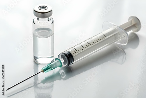 Medical Syringe and Vial Depicting Health and Hygiene for Vaccination or Medication Purposes in a Clean Environment