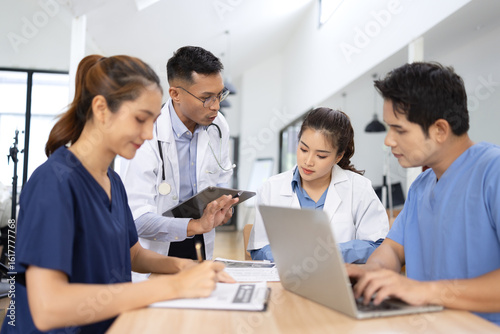 Medical team brainstorming having a meeting in conference room at hospital, Medical technology and health care concept.