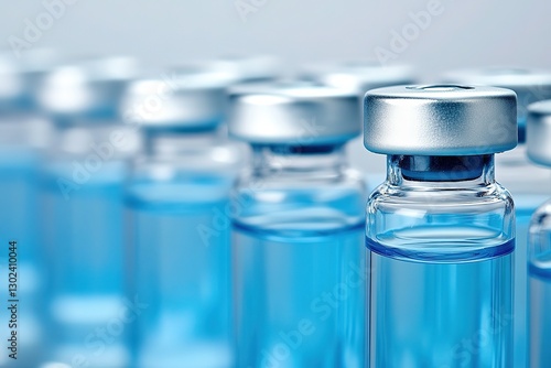Medical Vials with Blue Liquid Close-up of Sterile Vaccine Bottles