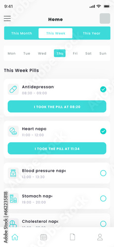 medication, drug, tablet, schedule, medicine, pill, drugged, reminder, mobile, app, template, design, interface, set, pill