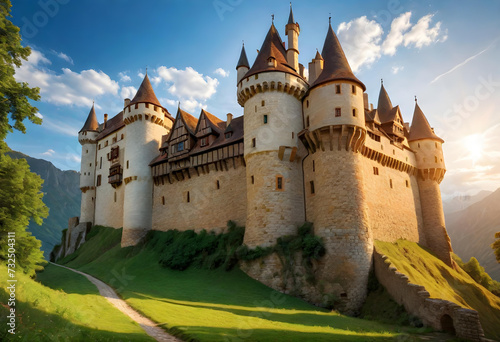 Medieval Castle, Fortification, Architecture, Historical, Ancient, Fortress, Stronghold, Stone, Tower, Ramparts, History, Heritage, Medieval Era, Kingdom, AI Generated