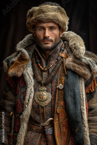 Medieval conquistador in ethnic clothes