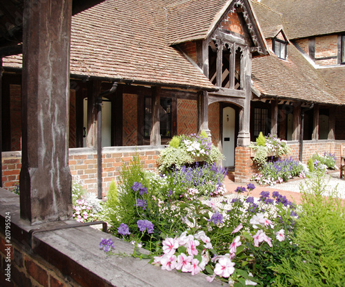 garden, courtyard, flower, england, building, architecture, plant, home, dwelling, residence, peace, sanctuary, gardening, horticulture, heritage, archway, arch, blossom, bloom, cloister