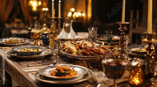 feast, mediaeval, banquet, dinner, table, food, roasted, meat, candle, hall, luxury, elegant, royals, rich, gold, ornate, antique, vintage, historic, celebration, delicious, dinnerware, dish, plating, eatery, catering, event, party, occasion, gathering, culinary, gastronomy, texture, warm, dark, ambience, setting, background, image, photo, stock, holiday