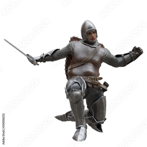 Medieval knight in armor isolated white background 3d illustration