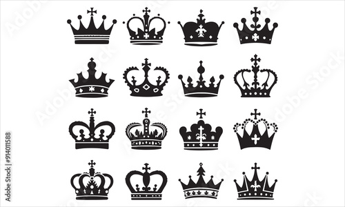 Medieval royal crown queen monarch king lord silhouette icons stock illustration Crown - Headwear, Vector, Coronation, Logo, Queen Royal Person