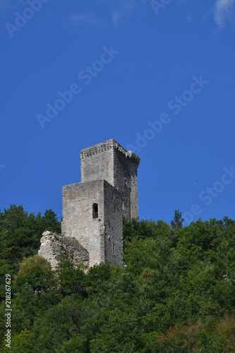 castle, tower, architecture, mediaeval, old, stone, ancient, fortress, sky, church, building, landmark, europa, history, wall, ruin, travel, landscape, fort, blue, tour tourism, hill, historical, stronghold, italy, tower, copy space, holiday
