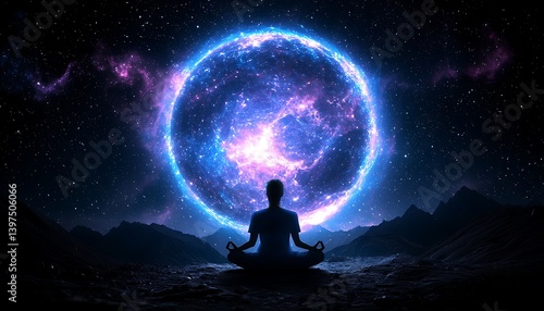 meditation, yoga, mindfulness, cosmos, galaxy, universe, serenity, peace, spiritual, zen, nature, mountain, landscape, night, star, space, astronomy, calmness, calmness, inner peace, light, energy, glow, orb, powerful, surreal, vision, nirvana, sharpened, concentration, practice, posture, seated, healing, chakra, power, well-being, inner, growth, balance, self, awareness