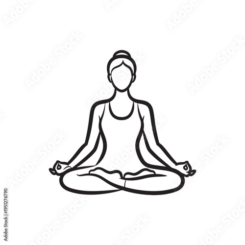 Meditation Woman Line Art Vector, Minimal Lotus Pose Yoga Continuous Line Illustration