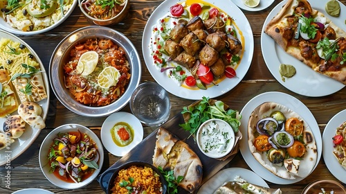 Mediterranean Cuisine Feast: Hummus, Pita, Falafel, Shawarma, Baba Ghanoush, and More