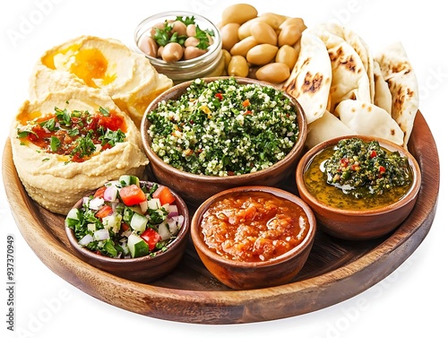 Mediterranean Food Platter with Hummus, Tabbouleh, and Pita Bread - A Realistic Food Photography
