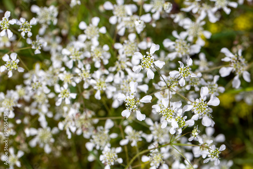 Mediterranean hartwort (Tordylium apulum) flowers in spring.