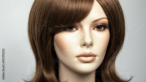 medium, brown, long, hair, wig, mannequin, head, whit, background, woman, beauty, face, fashion, model, make-up, lip, glamour, make-up, eye, coiffure, skin, red, studio, cosmetic, people, style, closeup, closeup, elegance, person, black, lipstick, brunette