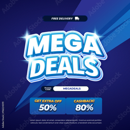 Mega day Sale discount deals blue gradient Editable text effect Blue light simple premium background banner
