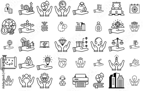business, management, cyberspace, strategy, emblem, abstract, creative, signs, symbol, vector, market, credit, marketing, increase, graphic, payment, calculating machine, profit, bag, hand, wealth, coin, money, banking, line, growth, invest, dollar, trade, bank, isolated, service, presentation, currency, flat, icon, balance