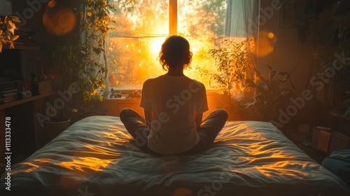 young men, back, bedchamber, sunlight, introspection, solitude, depression, warm tones, soft light, pajama, sitting, melancholy, anguish, weary, fatigue, stress, pressure, trouble, dark, despair, employee, businessman, salaried employee, room, window, dripped, marode, sad, lonely, escapism, flop, neurosis, apprehension, trapped, vulnerability, isolation, quiet, thoughtful, contemplation, heartache, lost, emotional, stillness, light, vague