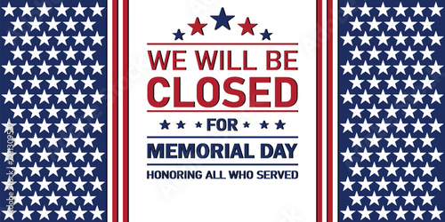 Memorial Day wallpaper with shapes and typography, banner, card, poster, template. We will be closed for Memorial Day, Modern background