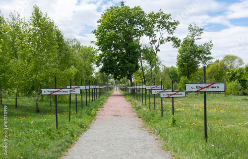 risk, city, row, paseo, signs, catastrophy, village, pollution, nuclear, abandoned, ruined, environmental, destruction, signboard, evacuation, green, lost, memorial, scene, soviet, remember, radioactive, dangerous, europa, sky, blue, forgotten, chernobyl, uranium, disaster, atomic, zone, tree, exclusion, cloudy, breakdown, ukraine, radiation