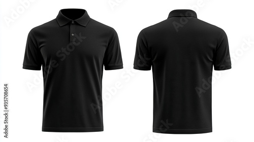 Men black polo shirt front and back view, Isolated blank front and back polo t-shirt for graphic design mock up.generative ai