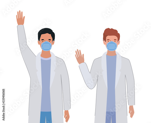 Men doctors with uniforms and masks vector design